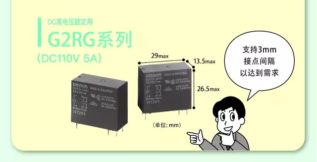 1、G2RG系列:DC110V/5A)小型、低功耗、DC高电压开闭