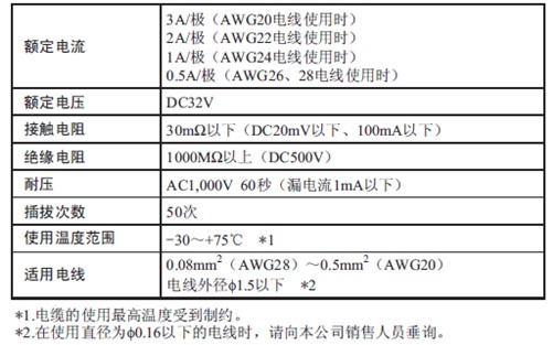 4、 一个连接器可以对应AWG28(0.08mm2)-AWG20(0.5mm2)的电线范围