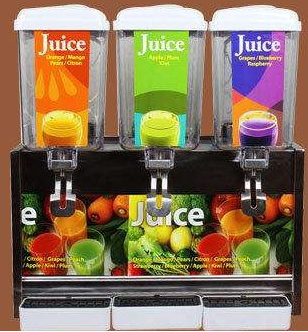 果汁机在我们生活中是非常常见的,通常有这两种:家用果汁机和商用果汁,家用的不用说大家都知道,很多家庭都有在用,而在公共场合用的商用果汁机我们也并不陌生,比如一些自助餐厅,一些活动场所,我们也会看到。如图所示: