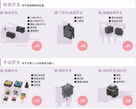 欧姆龙开关是具有微小接点间隔和快动机构,用规定的行程和规定的力度进行开关动动作的接点机构,用外壳覆盖,其外部有驱动杆的一种开关,因为其开关的触点间距比较小,故名微动开关,又叫灵敏开关。