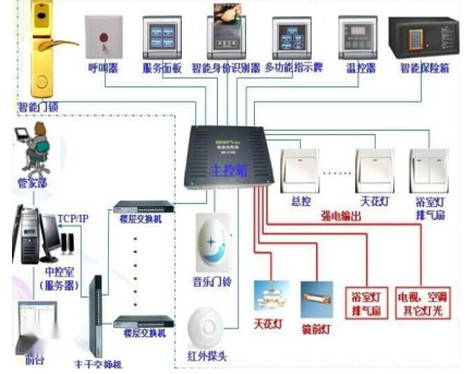 酒店客房控制系统(简称客房控制系统,客控系统),是利用计算机控制、通讯、管理等技术,基于客房内的RCU(客房智能控制器)构成的专用网络,对酒店客房的安防系统、门禁系统、中央空调系统、智能灯光系统、服务系统、背景音乐系统等进行智能化管理与控制,实时反映客房状态、宾客需求、服务状况以及设备情况等,协助酒店对客房设备及内部资源进行实时控制分析。由于其功能丰富,兼容性强,并提供与酒店管理系统的接口,已成为酒店全面智能化的必不可少的一部分。