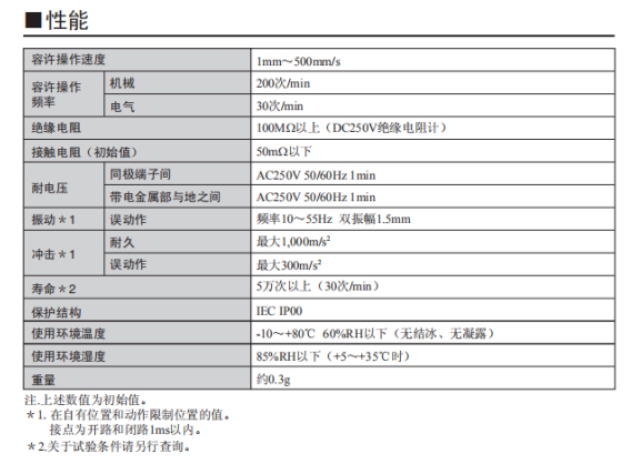 2.欧姆龙超小型(高6宽8X深4.2mm)、轻量(约0.3g)、3mm的长行程。