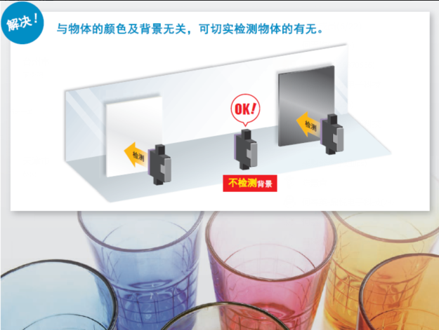 近年来,随着诸如包装机和咖啡机之类的各种工业设备的发展,并且它们已经变得越来越复杂和多功能,对于能够准确地检测产品而不受容器和包装的设计影响的传感器的需求正在增长。在将被检测物的颜色和材料基于特定条件进行检测的前提下,采用嵌入在设备中的常规反射传感器* 1。然而,当改变或添加对象时,存在检测不稳定的问题。