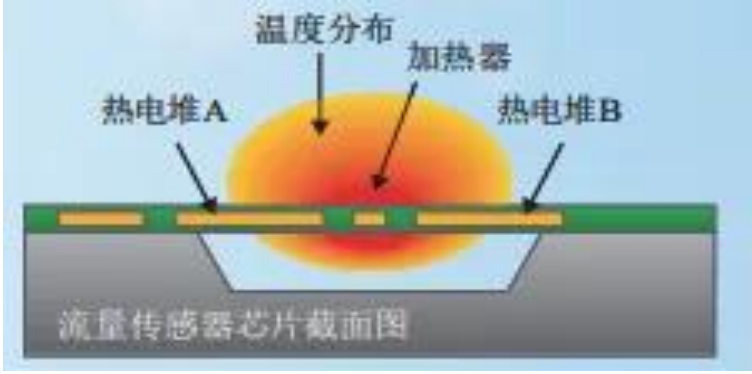 D6F系列传感器拥有引以为傲的高灵敏度,如蝴蝶振翼产生的微小气流,在规格书所标的环境温度和压力范围下,也能准确检测。D6F系列传感器主要有三种类型,包括流量传感器、流速传感器、差压传感器。其测试原理如图所示,在没有气体流动的情况下以加热器为中心,温度分布左右对称;如有气体流动,在气体流动的状态下热电堆发生变化,将温差作为热电堆的电动势之差进行传感,从而具有高灵敏度,可以准确检测微小的气体流量。