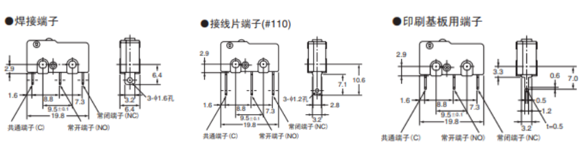 SS系列的开关具有多种焊接方式方便选型和安装方式: