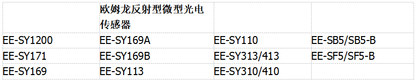对应我们欧姆龙反射型微型光电传感器又有哪些型号呢?我们通过下图来了解一下: