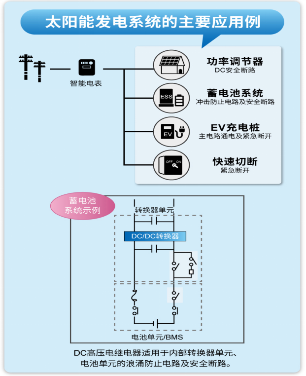 为减少温室气体排放,可再生能源市场正逐年扩大,适用于太阳能发电系统的各种应用,不断涌现面对日益增加的市场需求;欧姆龙电子部件推出一系列;性能强大的DC高电压继电器;快来看看这些明星阵容吧