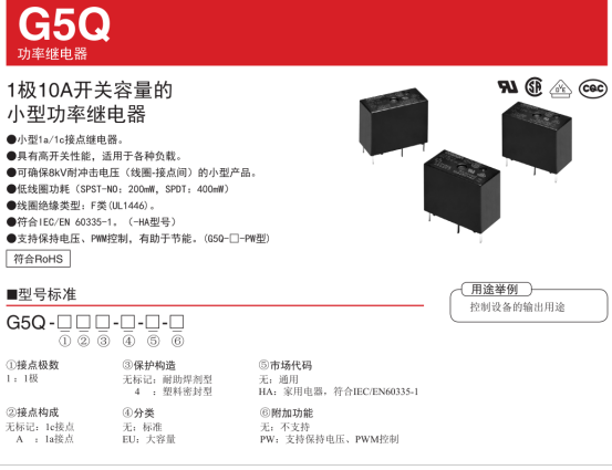 智能插座中重要器件是控制电路通断的继电器,而欧姆龙小型功率继电器型号G5Q性能正符合智能插座,我们来了解下它的具体特色: