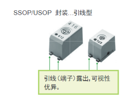 l SSOP/USOP封装的继电器,端子直接露出,可视性优异,安装便利。