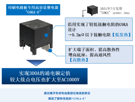 2023年3月1日欧姆龙全球发售300A额定值高容量继电器“G9KA-E”,实现了用于太阳能发电系统的功率调节器高功率化,可在抑制继电器自身发热的同时,提高散热性能并实现电流通电。由此,实现了太阳能发电所用功率调节器的高功率化,加速可再生能源的普及,从而为实现脱碳化社会作贡献。